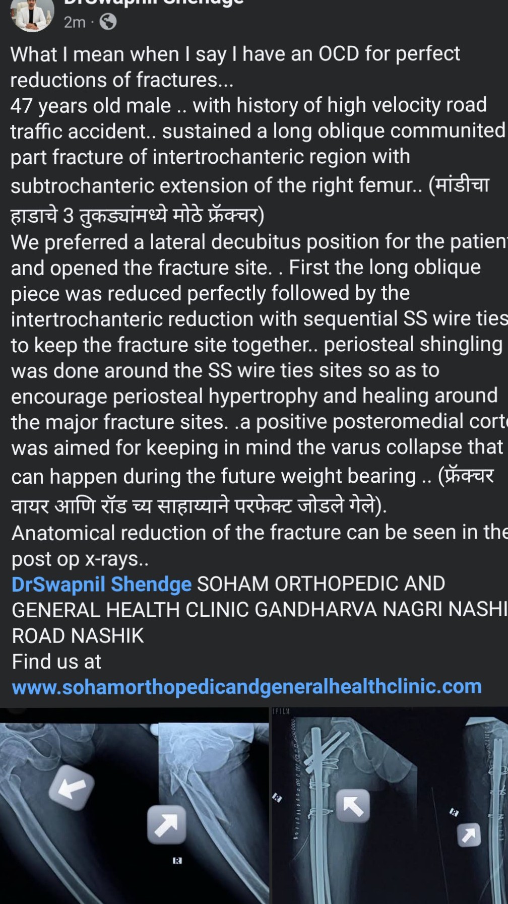 At Soham Orthopaedic and General Health Clinic, we are committed to delivering expert medical care with a patient-centered approach. Led by Dr. Swapnil Shendge and Dr. Kalyani Shendge Chaudhari, our clinic offers specialized treatments in orthopedics, general medicine, nutrition, and skin care to ensure comprehensive healthcare for individuals of all ages.Dr. Swapnil Shendge (MMC 2017041320) is a highly skilled orthopedic surgeon specializing in joint replacement and complex trauma surgeries. With an extensive background in hip, knee, and shoulder replacements, he is passionate about restoring mobility and relieving pain for his patients. His expertise extends to the treatment of fractures...